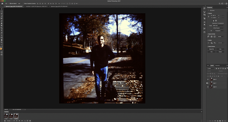 At this point, you can choose to edit your video together in a photo editing software like Photoshop or use a video editing software. If using Photoshop, I recommend using Frame Animation to build the gif. Here are the basic steps: